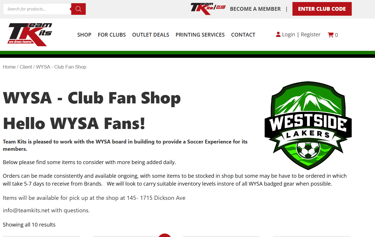 Our online store, in partnership with TeamKits, is the place to get your WYSA clothing and accessories