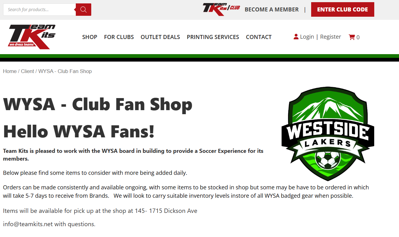 The WYSA online store has been stocked with JOMA. Need a second training shirt or pair of shorts? Or a backpack and pullover? Check out the store