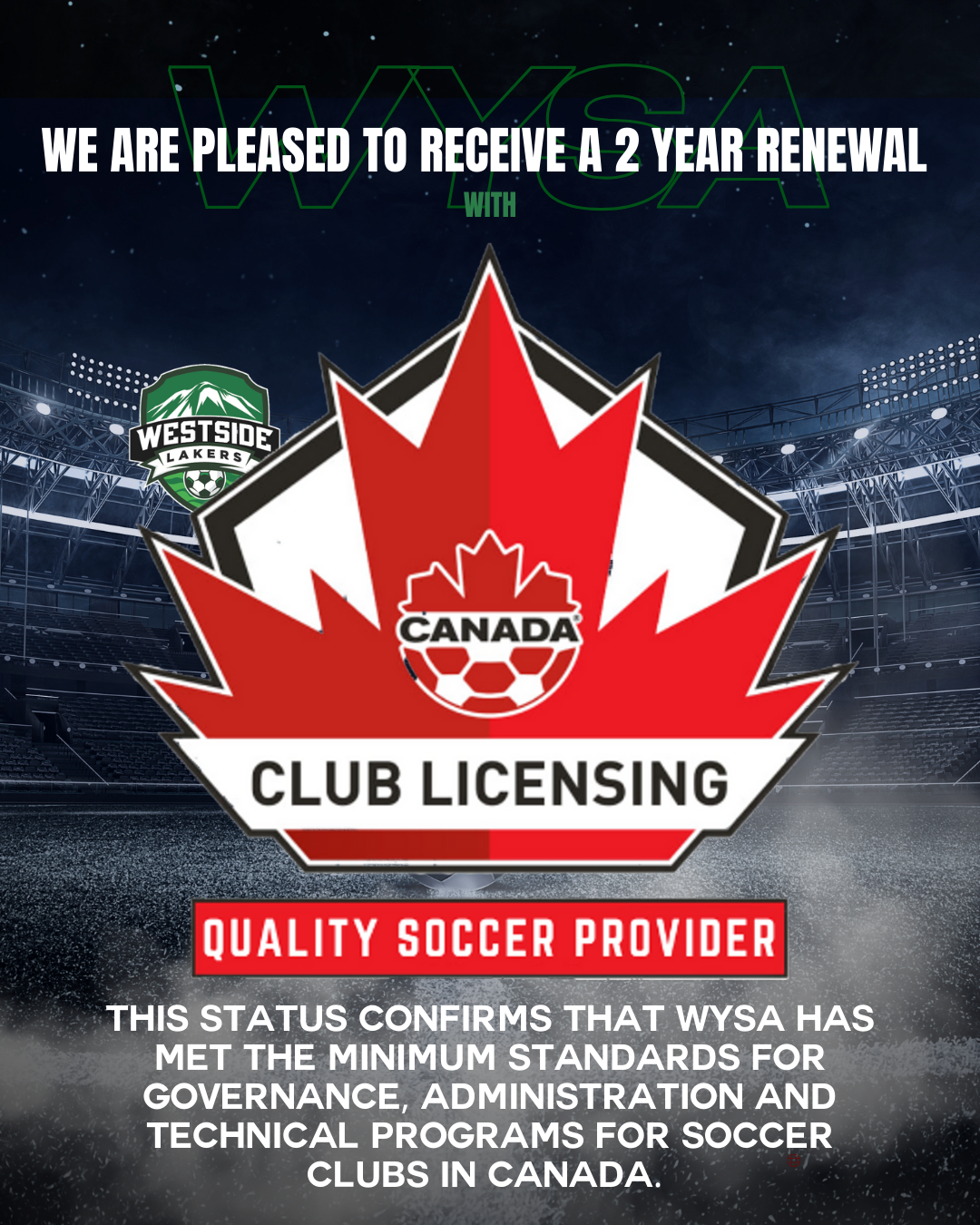 WYSA receives 2 year license renewal as Quality Soccer Provider